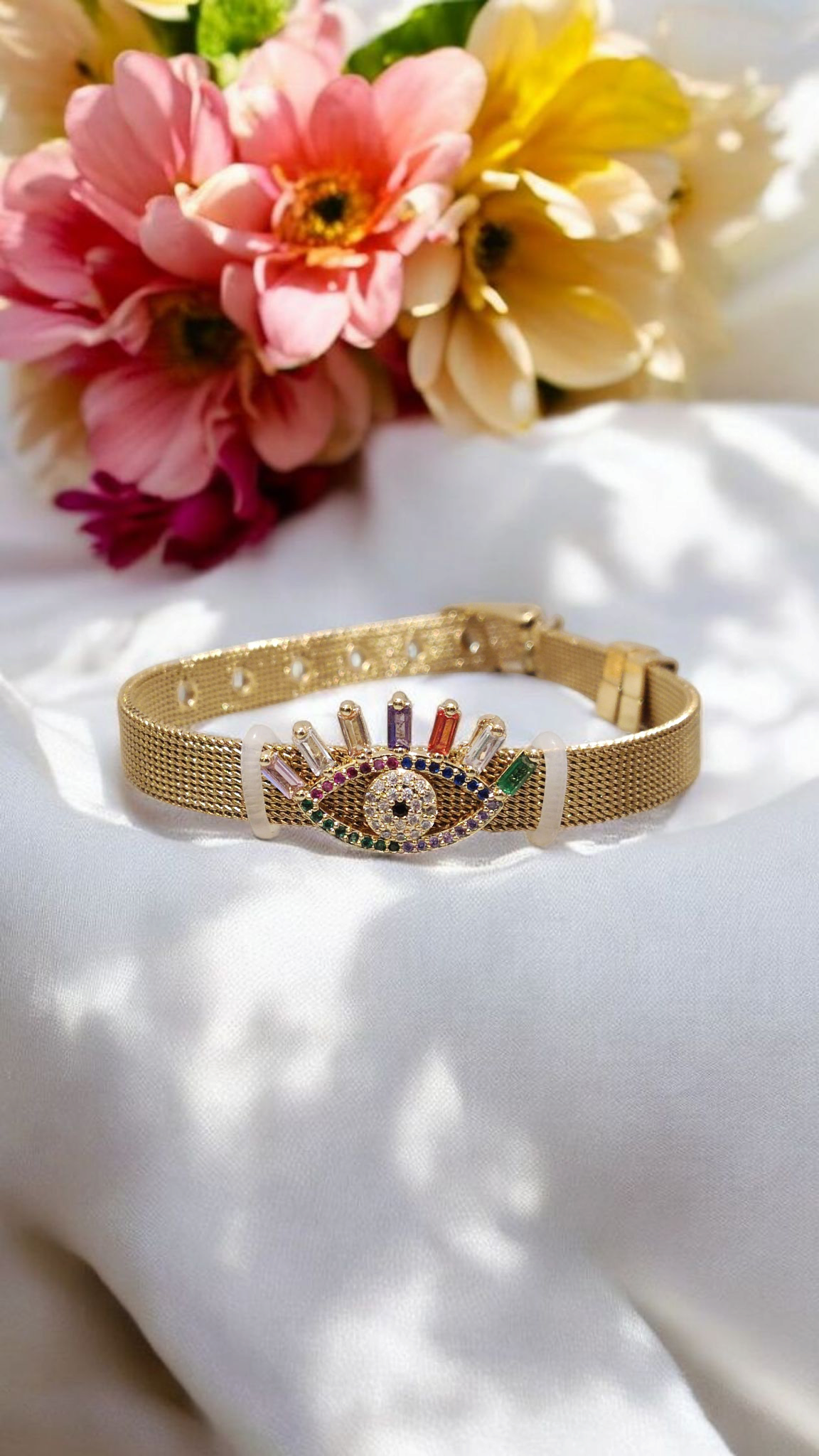 This radiant evil eye bracelet is more than just an accessory — it’s a vibrant guardian of good vibes. Whether you’re styling it solo or stacking it up, Aura Shield adds a bold touch of protection and sparkle to every outfit.