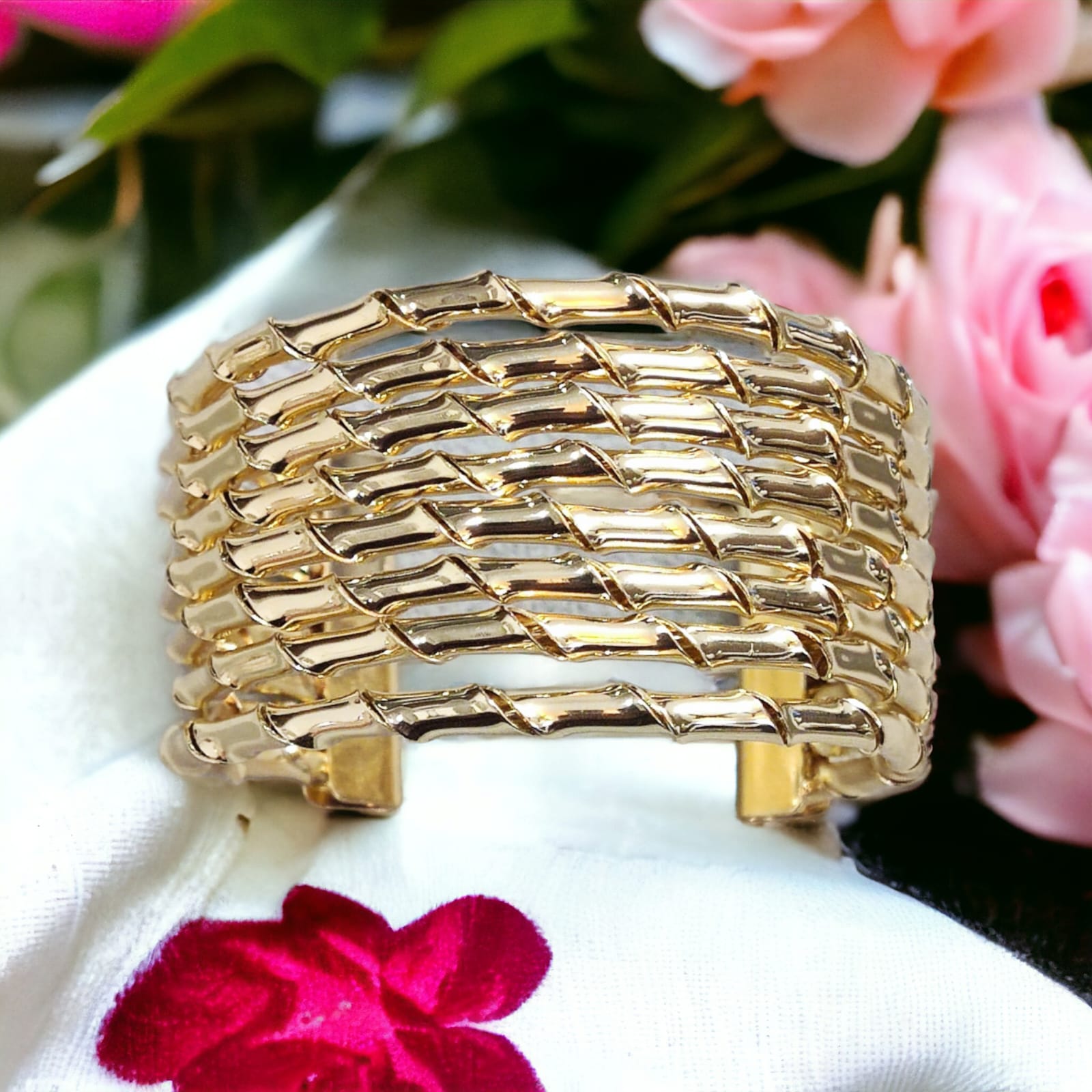 This cuff is a showstopper on its own. Style it solo with a crisp white shirt and rolled sleeves for a powerful minimalist look. Want to go bold? Stack it with thinner bangles or pair it with matching gold hoops for a glam evening vibe. It also works beautifully with Indo-Western fits — think saris, kaftans, or co-ord sets.