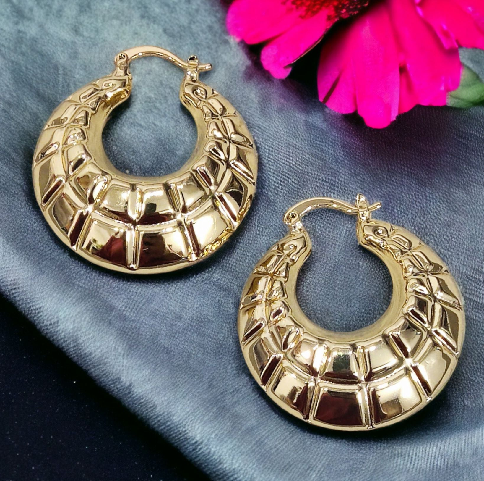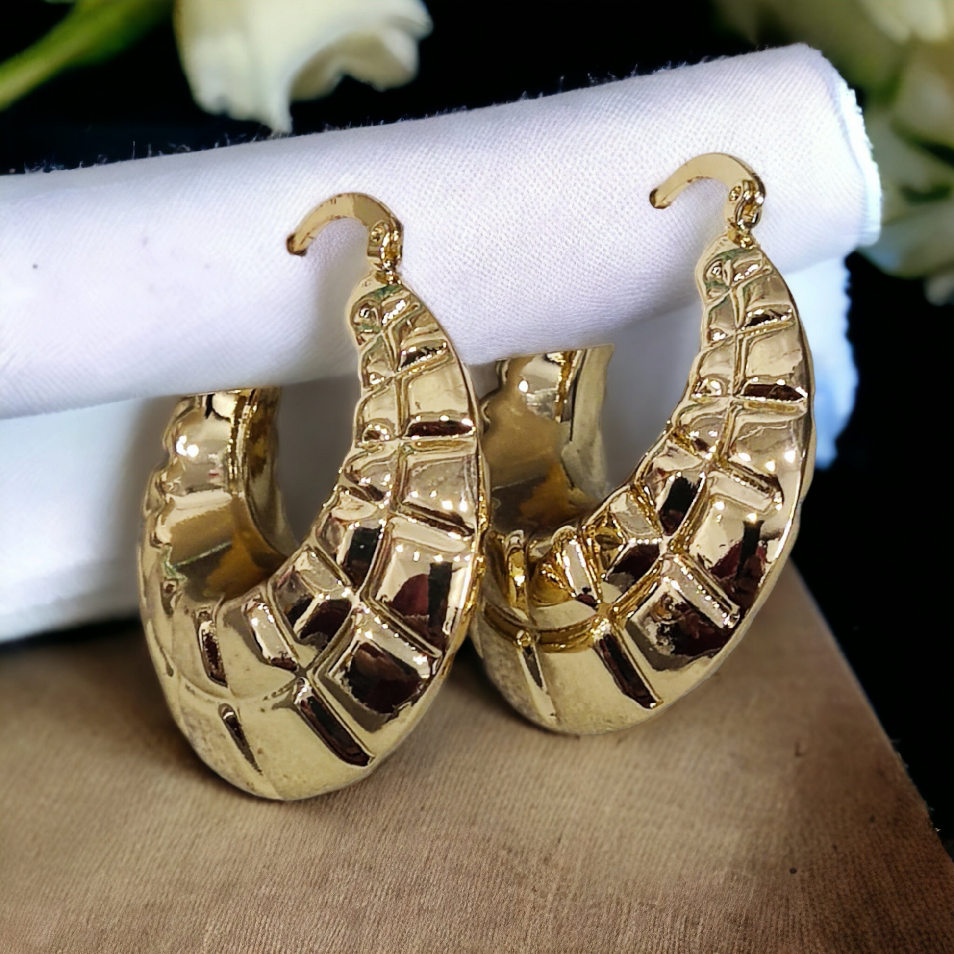 Elevate your everyday look with the Grid Luxe Hoops - bold, gold-toned earrings crafted in anti-tarnish stainless steel. Designed with a luxe, textured grid pattern, these hoops add instant glam to both casual and dressy outfits. Durable, lightweight, and perfect for daily wear.