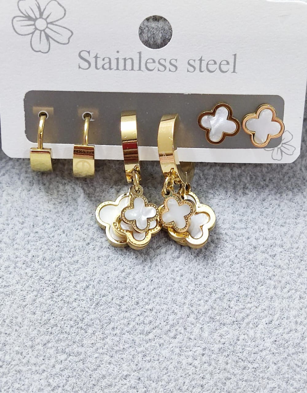 Bring a touch of charm and elegance to your jewelry collection with this set of 3 gold-plated stainless steel earrings set.