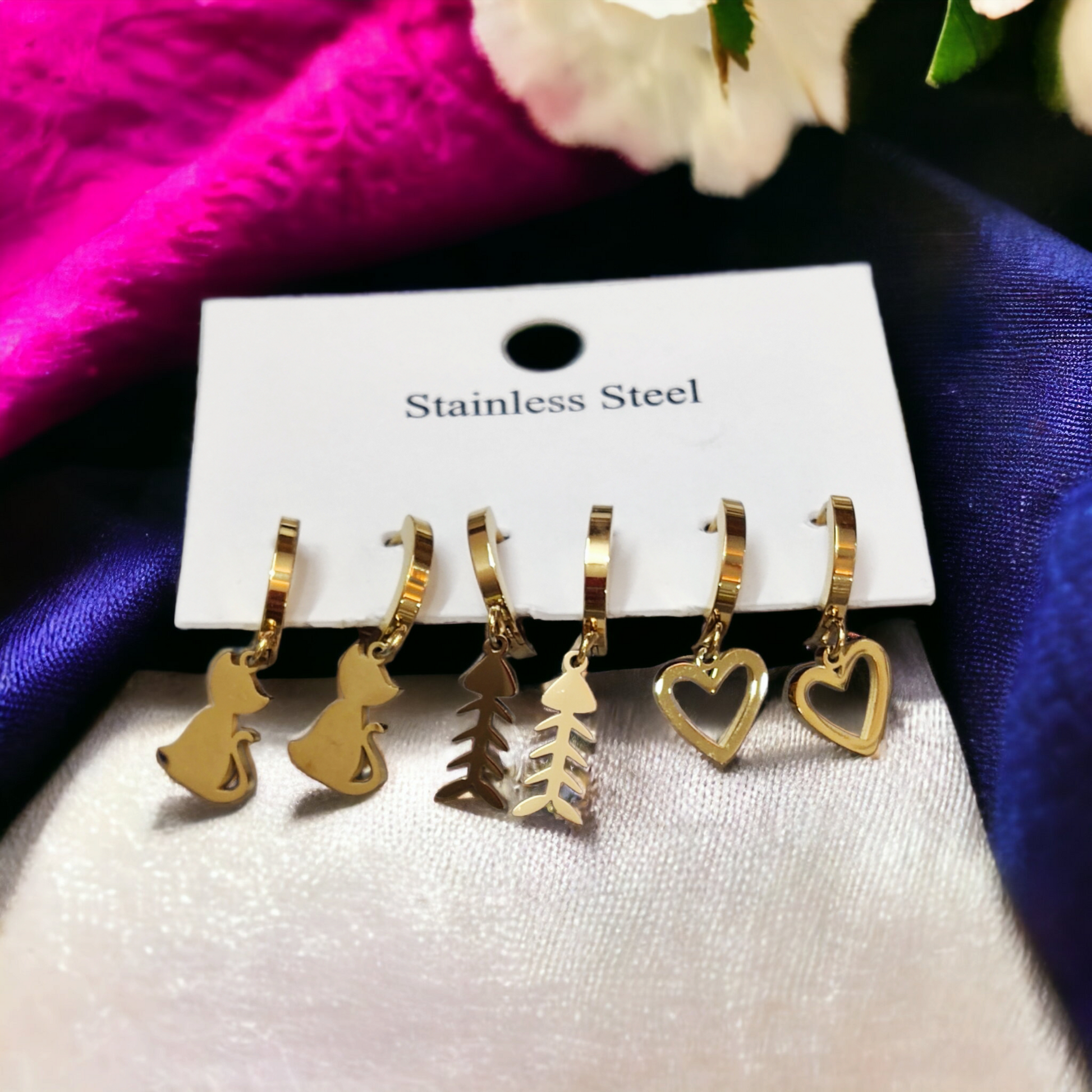Add a fun twist to your accessory game with our Purrfect Catch earrings! This charming trio features playful cat silhouettes, quirky fish skeletons, and sweet open-heart charms — perfect for animal lovers and trendsetters alike.